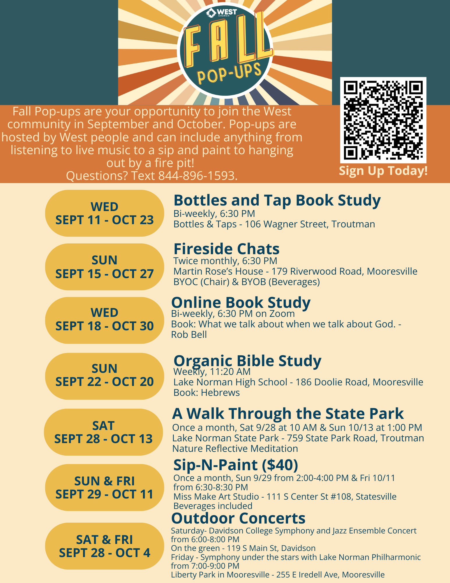 Help create connections and community with West Church’s Fall Pop-Ups!