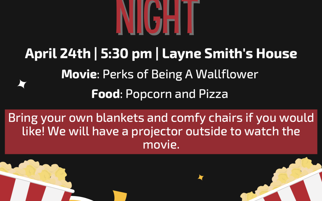Join us at Layne Smith’s house (address will be sent out closer to date) on Sunday, April 24 at 5:30 PM for a R.E.A.L. Youth devotion and movie night! We will have popcorn and plenty of pizza so bring a friend! We will be watching The Perks of Being a...